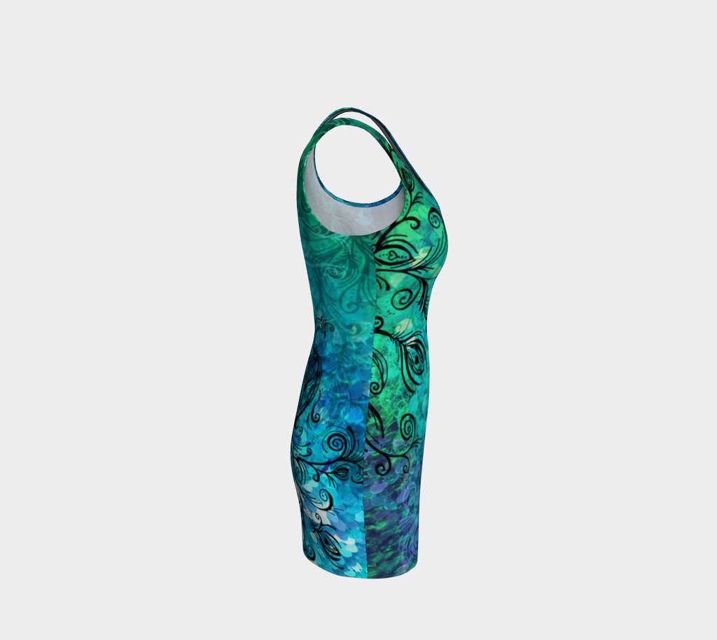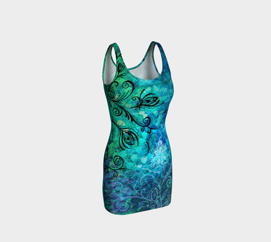 Fitted dress hugs your body and the bottom falls just above mid-thigh on most customers