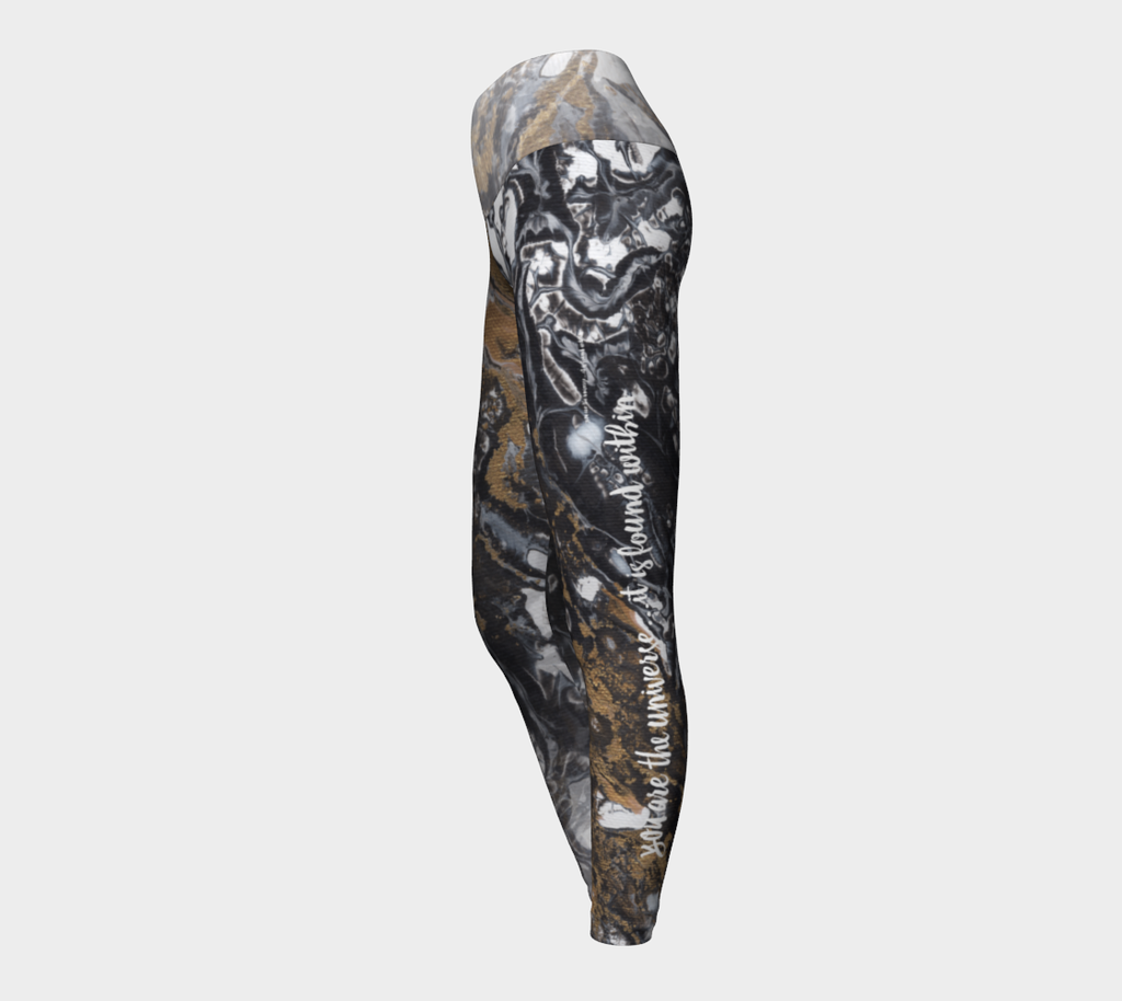 Words on the leggings: 'you are the universe… it is found within'